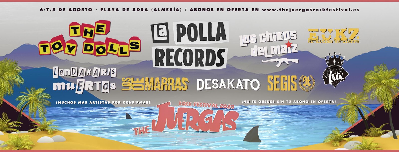 La edición más punk del Juerga’s Rock festival, continúa sumando nuevas bandas a su cartel, en el que ya se leen nombres como LA POLLA RECORDS, THE TOY DOLLS, DUBIOZA KOLEKTIV, LENDAKARIS MUERTOS, LOS CHICOS DEL MAÍZ, DESAKATO, SFDK, SEGISMUNDO TOXICÓMANO, LOS DE MARRAS, EL ÚLTIMO KE ZIERRE, IRA y muchos más por confirmar.