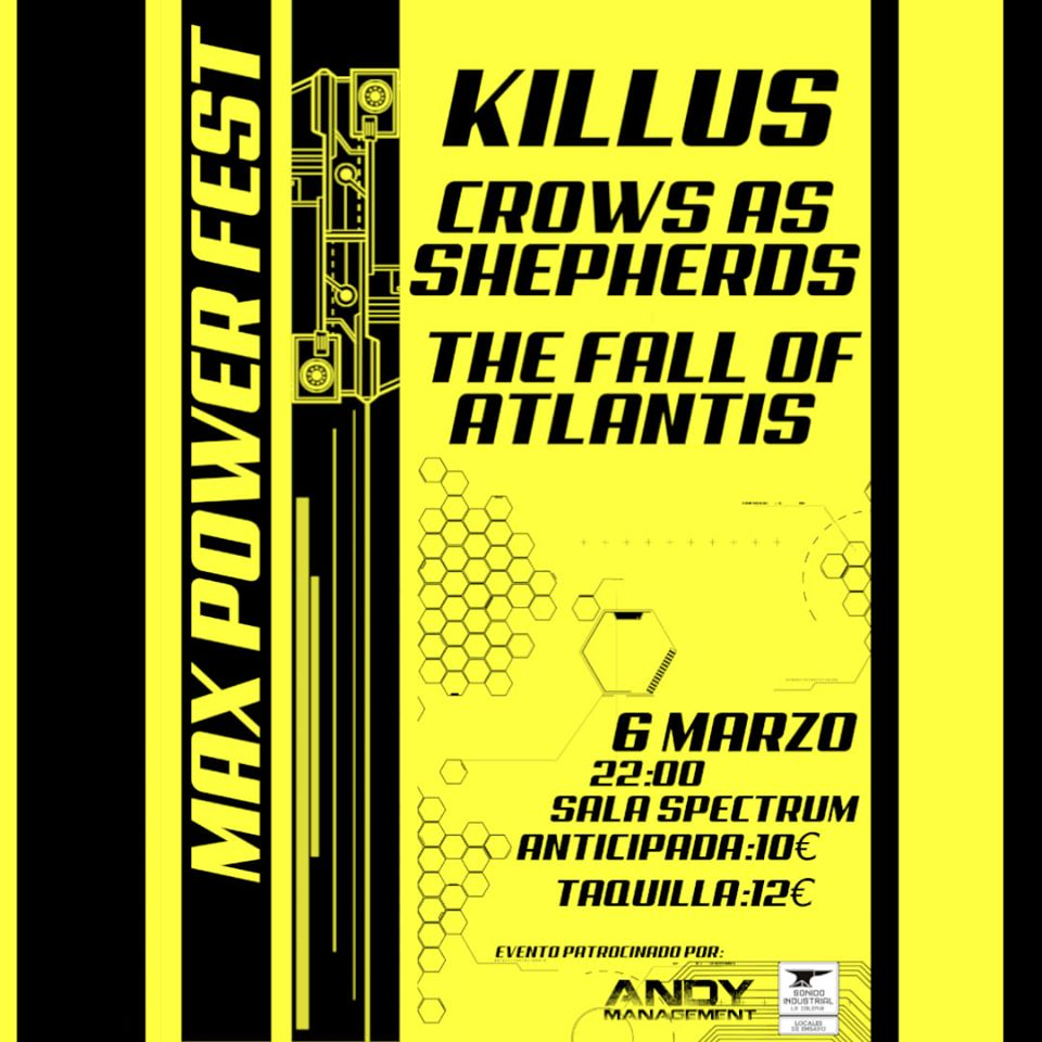 El 6 de marzo nos reunimos en Murcia en la sala Spectrum para ser partícipes del primer MAX POWER FEST. Un evento creado por los propios CROWS AS SHEPHERDS y con muy buen gusto pensado. La sala a rebosar de gente. Y el metal más cañero y duro posible en una mezcla casi perfecta de bandas. Pareciera poco al ser sólo 3 bandas, pero al disfrutar de cada uno de los conciertos, que fueron de más a más progresivamente, un servidor salió de alli más que sorprendido, de principio a fin. A continuación os cuento los detalles.