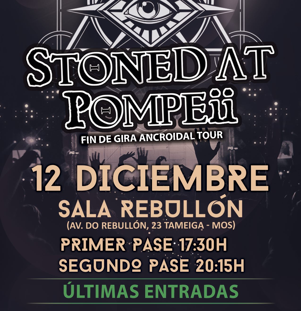 Mañana sábado 12 de diciembre los gallegos STONED AT POMPEII despedirán su gira «Ancroidal Tour» en casa, en el Auditorio Sala Rebullón (Av. do Rebullón, nº 23, 36416, Tameiga Mos).
