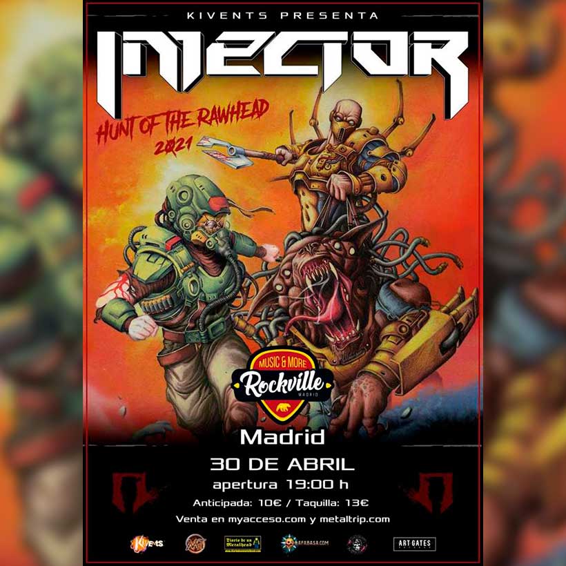 El disco Hunt Of The Rawhead de INJECTOR ha salido publicado en formato CD por Art Gates Records y pronto, para los coleccionistas habrá una edición vinilo de la mano de Clifford Records y la Asociación Metalmería, que ha colaborado en su edición. Los detalles del concierto de Injector en la Sala Rockville de Madrid son los siguientes: Apertura de puertas 19:00h, entrada anticipada 10€/13€ en taquilla en myacceso.com y metaltrip.com.