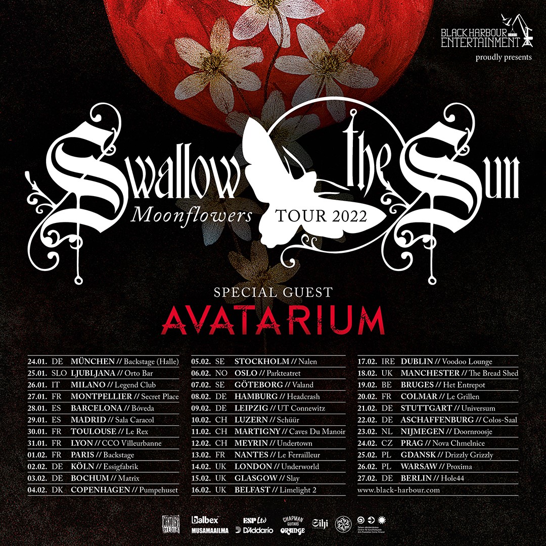 La gira, que comenzará el próximo día 24 de enero de 2022 en Múnich (Alemania), se alargará durante más de un mes pasando por 15 países con un total de 35 conciertos. SWALLOW THE SUN vendrá a presentar su última obra Moonflowers, que sale a la venta el próximo 19 de noviembre a través de Century Media Records. Las fechas confirmadas en España son las siguientes: