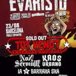 Después de las giras sudamericana y latinoamericana este sábado 23 de agosto en Barcelona, por fin, comienza la gira peninsular de EVARISTO. El cantante dará un buen repaso a su vida musical interpretando temas de todos los grupos en los que ha estado desde sus inicios en LA POLLA RECORDS hasta el actual TROPA DO CARALLO y su paso por THE KAGAS y THE MEAS y GATILLAZO. El gallego anunció hace casi un mes que se habían agotado las entradas para este primer concierto.