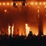 Detrás de ellos el resto del escenario estaba tapado con una cortina negra que cayó antes de Glitch para mostrarnos la batería de Ben Gordon dentro de una estructura circular, unas columnas por el escenario y un grupo de bailarines que los acompañaron en el citado tema y en unos cuantos más durante la actuación. En ese momento también comenzó el espectáculo de fuego que calentó las caras de todos los presentes en Vistalegre durante buena parte del concierto.